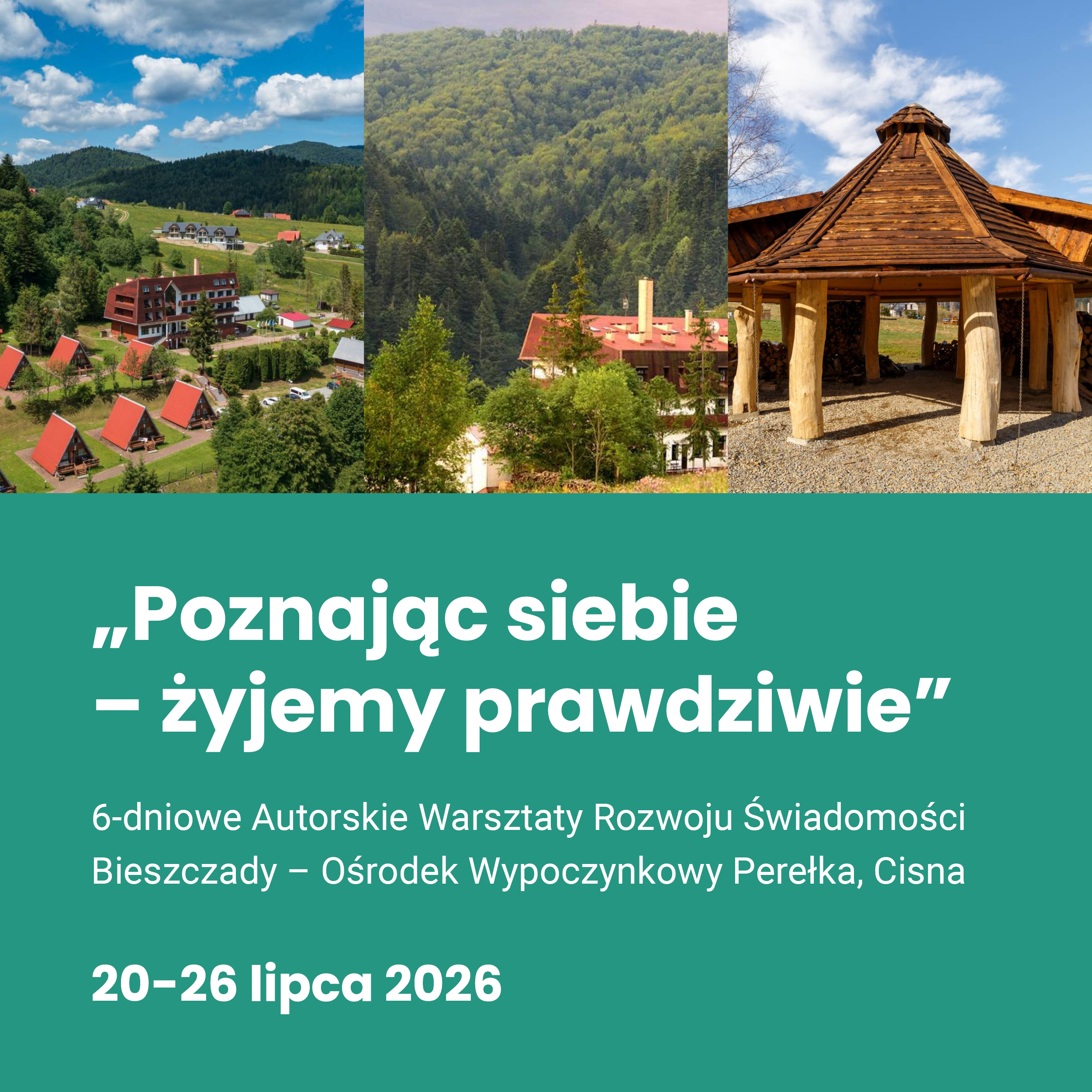 6-dniowe Warsztaty Rozwoju Świadomości – WEWNĘTRZNY ŚWIAT W CODZIENNYM ŻYCIU. Bieszczady, Ośrodek Perełka (CISNA) 20-26 LIPIEC 2026